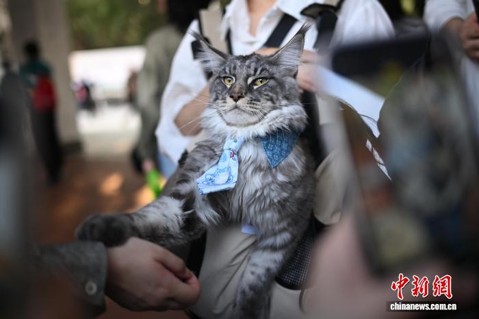 12月6日,以“萌辱偕行,亲热齐运”为中央第109届华北(广州)辱物嘉韶华正在位于广州市银河区的华北农业年夜教举办。图为辱物猫吸收公众。中新社记者 旧楚白 摄